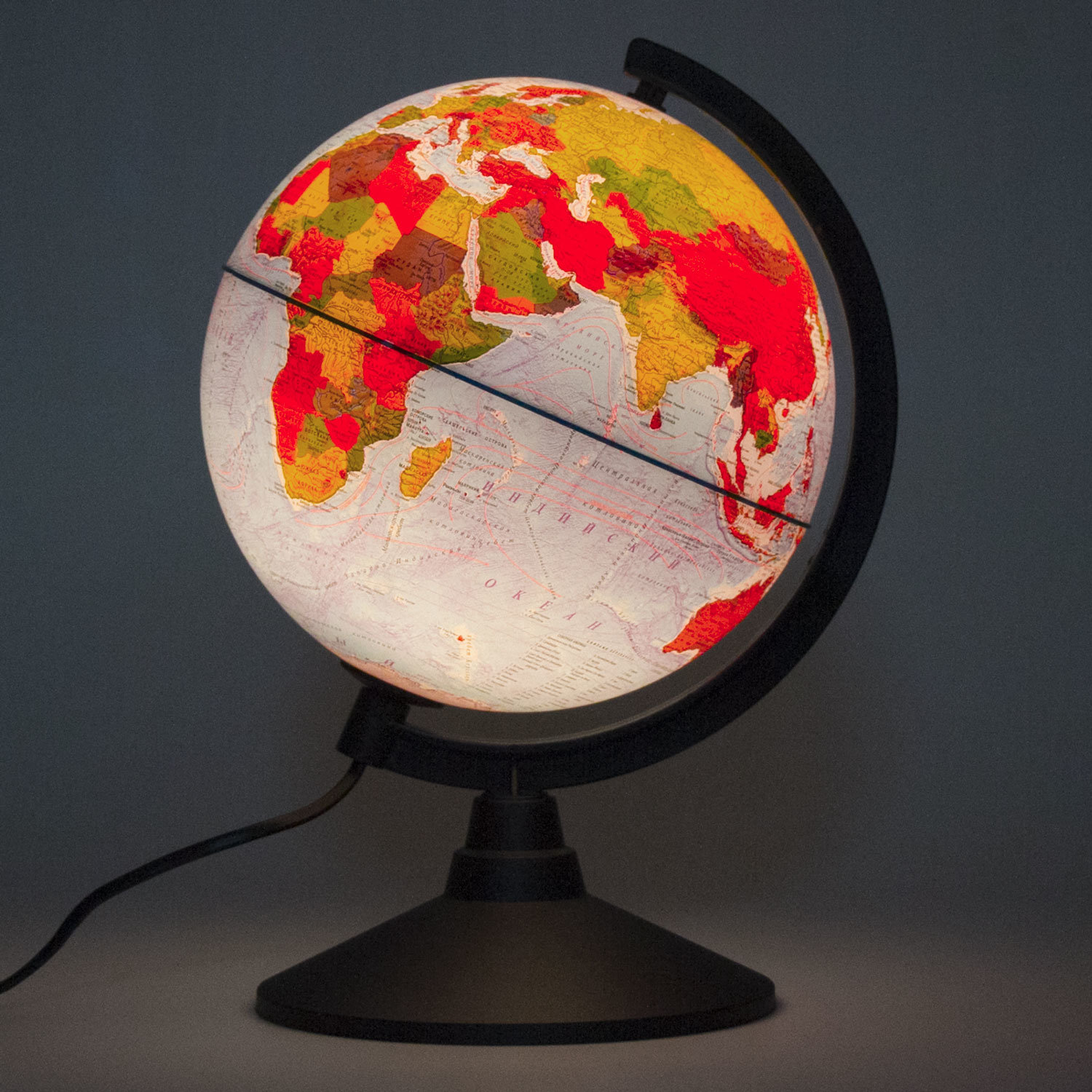 Вид глобуса: двойная карта Подсветка глобуса: да Диаметр глобуса: 210 мм Надписи на русском языке: да Масштаб: 1:60 000 000 Форма подставки: круглая Материал подставки: пластик Применим для школьных учебных заведений: да Упаковка: картонная коробка