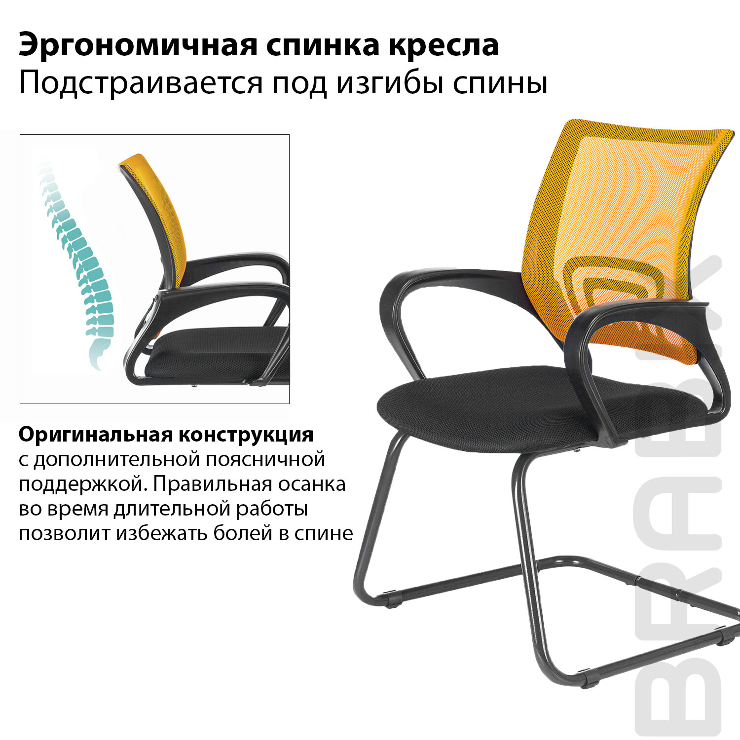 Спинка выполнена из прочного материала - акриловой сетки и имеет выраженную поясничную поддержку, обеспечивающую комфортную посадку в течение всего рабочего дня.Ткань TW обладает высокой воздухопроницаемостью и прочностью, практически не истирается.Наполнитель сиденья - утолщенный поролон средней жесткости.Металлические полозья способны выдержать нагрузку до 120 кг!Неприхотливая модель для дома и офиса среднего ценового сегмента.Кресла марки Brabix отличаются современным дизайном, эргономикой, аккуратным исполнением и отличным соотношением цены и качества.