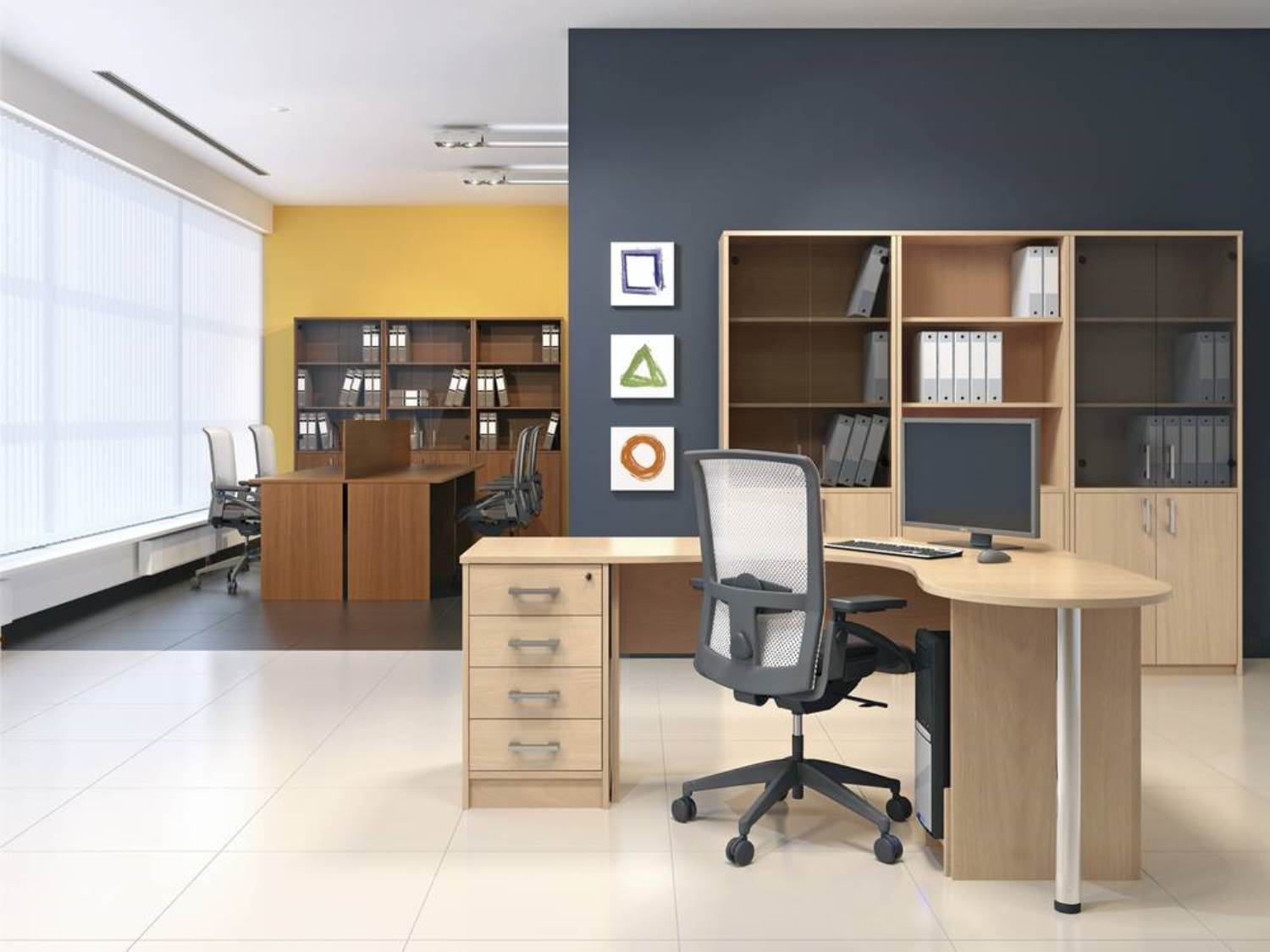 Тумба приставная "Арго", 440х600х760 мм, 4 ящика, замок, ясень шимо (КОМПЛЕКТ)