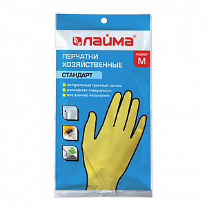 Перчатки хозяйственные латексные LAIMA "Стандарт", МНОГОРАЗОВЫЕ, хлопчатобумажное напыление, размер L (большой), 600270