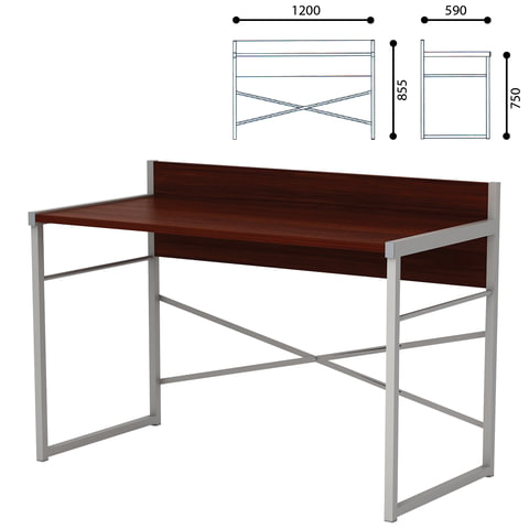 Габаритные размеры (ВхШхГ) - 855х1200х590 мм. Каркас - металлическая труба квадратного сечения 25х25 мм. Стойкое полимерное покрытие серого цвета. Столешница - ЛДСП 22 мм. Цвет - "орех пегас". Поставляется в разобранном виде. Все элементы упакованы в один гофрокороб.